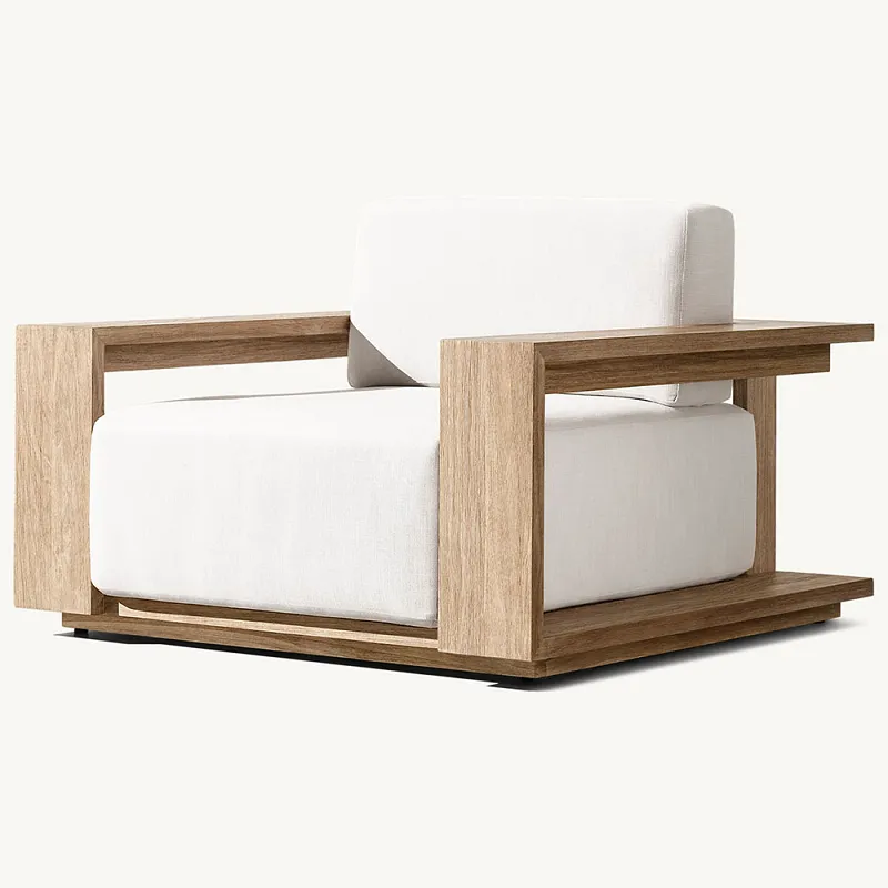 Tá cúisíní suíocháin inbhainte ar ár cathaoireacha patio adhmaid soladach le haghaidh glanadh agus cothabháil éasca. Tá an mhaolú suíocháin déanta as fabraic ardchaighdeáin, nach bhfuil ach meaisín-nite, ach freisin go bhfuil feidhm ag teicneolaíocht uiscedhíonach agus frith-smálaithe chun cinn chun stains leachtacha agus salachar in úsáid laethúil a sheasamh go héifeachtach. Cinntíonn an dearadh seo ní hamháin áisiúlacht an ghlanadh, ach leathnaíonn sé freisin saol seirbhíse an mhaolú suíocháin, ag cothabháil a úrnuachta agus a áilleacht fiú le linn coinníollacha aeráide lasmuigh a athrú. Chun an taithí scíthe is fearr is féidir a sholáthar, tá suíochán an chathaoir patio deartha chun a bheith idir domhain agus leathan, a dhéanamh ar gach suí síos le taithí scíthe iomlán. Ligeann an spás suíocháin mhór duit do staidiúir suí a choigeartú go saor. Cibé an bhfuil tú ag léamh, ag grianghortha nó ag roinnt ama fóillíochta le cairde agus le teaghlach, is féidir go mbraitheann tú compord gan sárú.