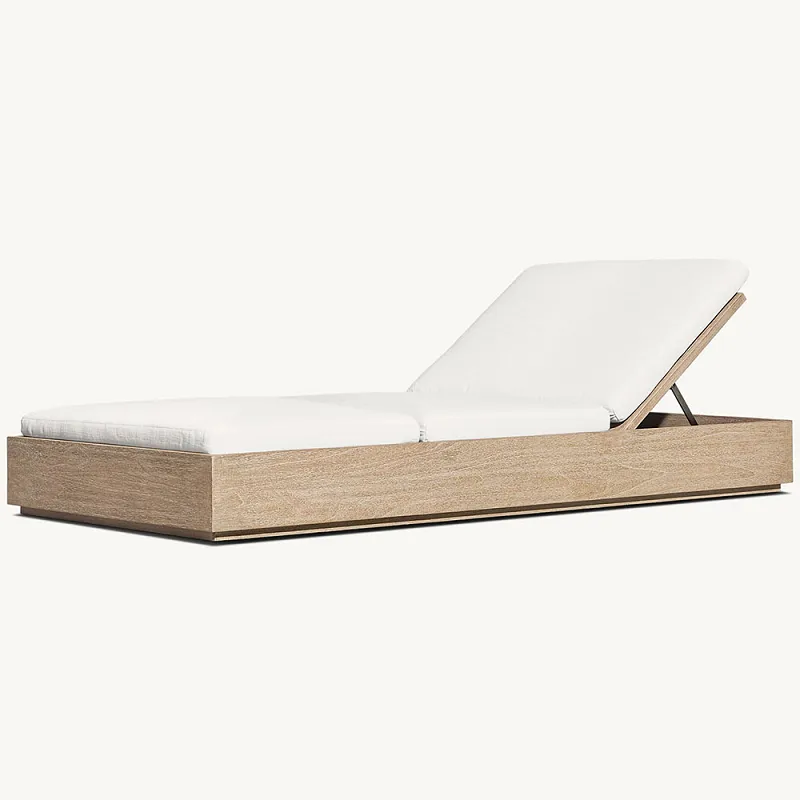 Déantar adhmad teak a cheiliúradh as a marthanacht eisceachtúil agus a fhriotaíocht nádúrtha ar na heilimintí. Is rogha iontach é seo do throscán amuigh faoin aer, go háirithe i gcruthú lounge chaise teak síondaite. De réir mar a théann teak in aois, forbraíonn sé go nádúrtha patina galánta airgid-liath nach bhfuil ach tarraingteach ó thaobh amhairc ach a fheidhmíonn freisin mar bhac cosanta i gcoinne strusanna comhshaoil cosúil le gathanna UV, báisteach, agus go leor eile. Cuireann an próiseas síonchaitheamh seo le neart agus le háilleacht an tolglann chaise, rud a fhágann go bhfuil sé mar bhreis buan ar aon bhailiúchán lasmuigh.
