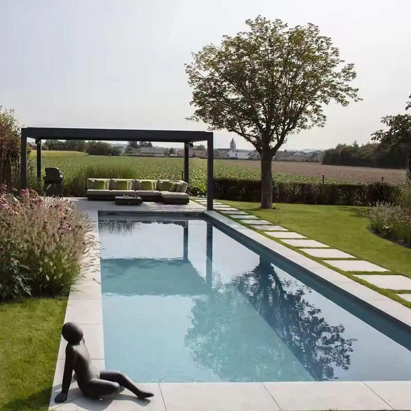 Is féidir le díon louver an gazebo, lena dhearadh gutter gairmiúil, uisce báistí a threorú go héifeachtach ar an talamh, an t-ualach báistí agus sneachta ar an gazebo a laghdú, an díon agus na feistí louver a chosaint, agus an saol seirbhíse a leathnú. Fiú amháin i dtimpeallachtaí tais, is féidir feidhmíocht uiscedhíonach alúmanam a úsáid go hiomlán, agus ní dhéanfaidh stains uisce agus comhpháirteanna ceimiceacha san aer dochar dó ó am go chéile.