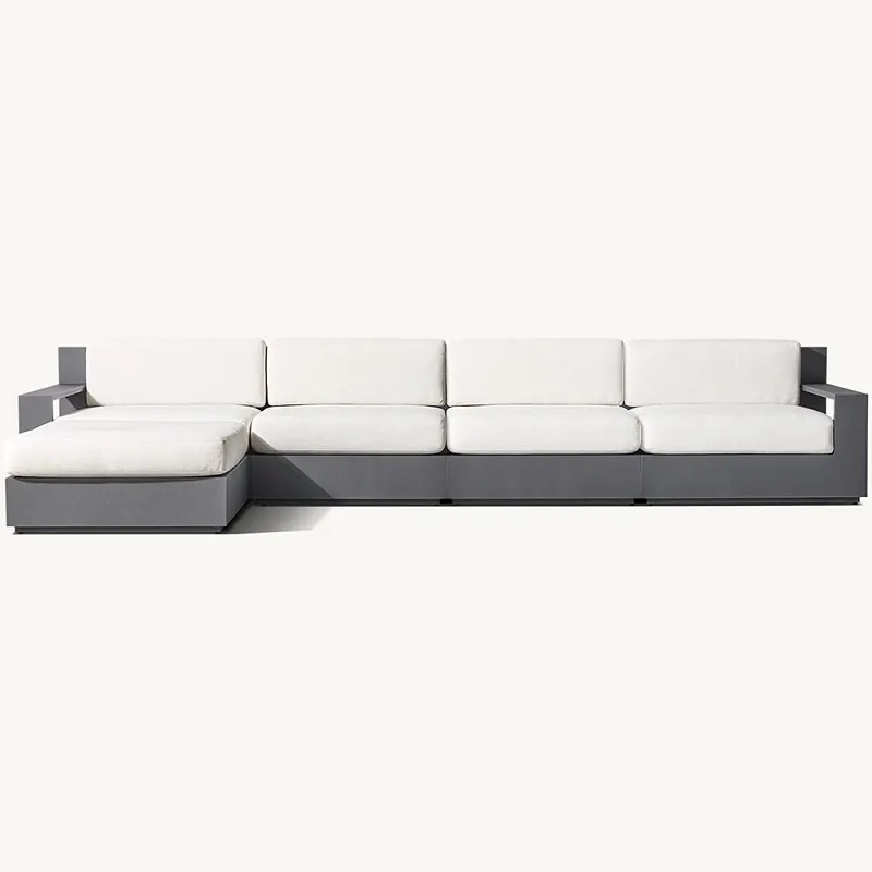 Comhcheanglaíonn an rannán seo suíocháin dhomhain, plush le dearadh fráma íostach chun rogha suíocháin lasmuigh atá tarraingteach ó thaobh amhairc agus thar a bheith compordach a thairiscint. Tá an cumhdaitheoireachta liath dorcha déanta as fabraic ardcháilíochta, aimsir-dhíonach a sheasann d'athruithe séasúracha agus a cuma galánta á choinneáil aige. Tá gach mhaolú líonta le cúr tiubh a thacaíonn agus a chompord, atá oiriúnach le haghaidh uaireanta suí nó cruinnithe sóisialta.
