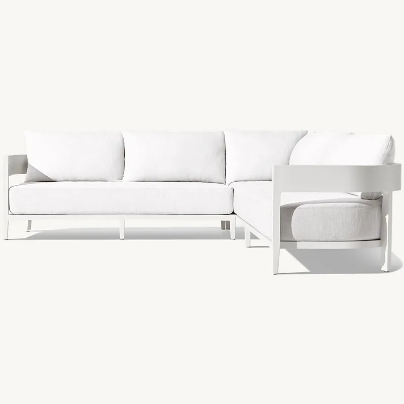 Déan do limistéar maireachtála lasmuigh a chlaochlú leis an Sofa Allamuigh Coirnéil Miotail, áit a dtagann stíl, compord agus marthanacht le chéile. Is é an rud breise iontach é chun an leas is fearr a bhaint as do spás amuigh faoin aer, ag soláthar láthair luxurious le haghaidh scíthe agus siamsaíochta.