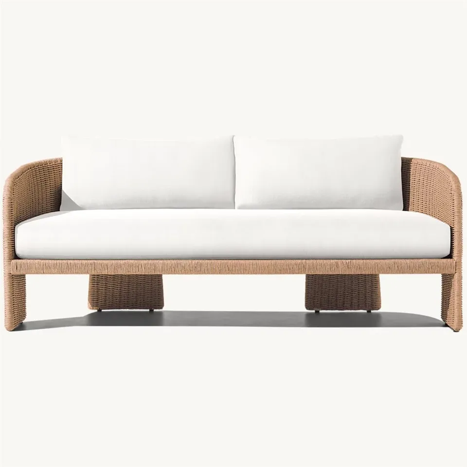 Mar gheall ar an dearadh thimpeallaithe mothaíonn daoine sábháilte agus te, amhail is go bhfuil siad fillte i gculaith bhog. Tá an mhaolú suíocháin uachtarach bog agus compordach, rud a thugann teagmháil cosúil le scamall duit. Tá an ciseal níos ísle déanta as RatánComment lámh-fhite chun éadrom agus aeráil a chinntiú, rud a choinníonn tú fionnuar fiú sa samhradh te. Ní hamháin go n-ardóidh an próiseas fíodóireachta seo áilleacht an tolg, ach tugann sé aeráil uathúil agus breathability freisin.